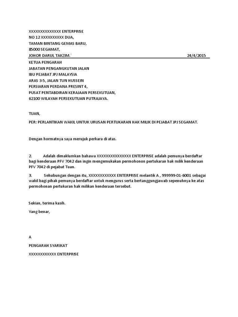 Contoh surat wakil(jpj/sebut harga/ambil dokumen/myeg/kebenaran/bank/lhdn/ majikan) contoh surat wakil kuasa urusan rasmi sebagai panduan .